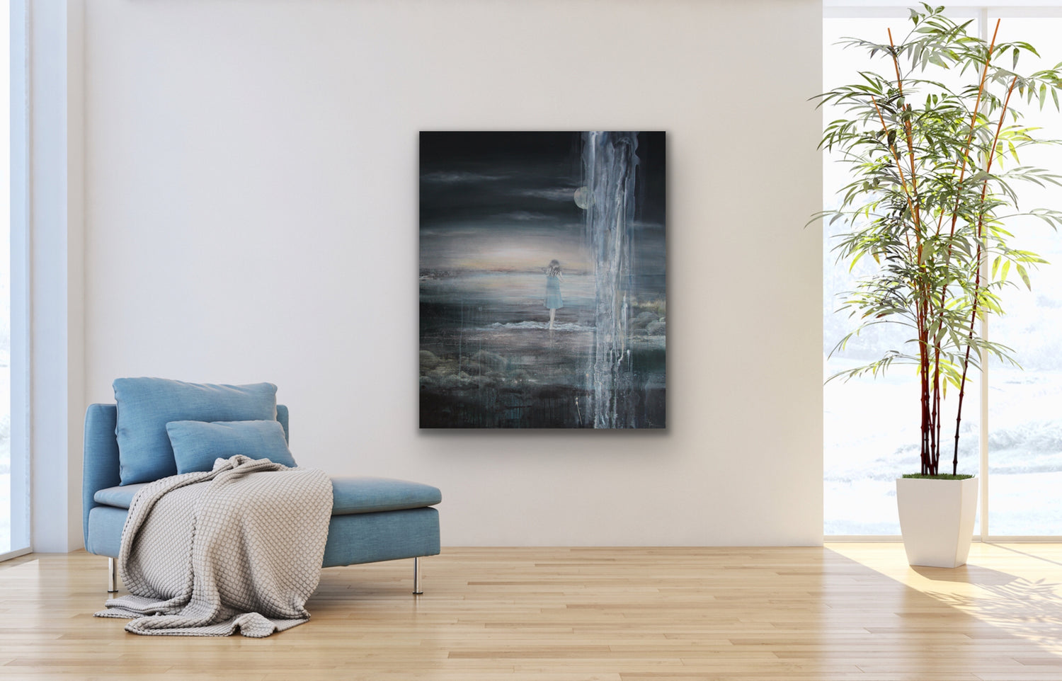The more I am exposed to Rakel’ Thorsell Flåten` work the more I appreciate it and the more beauty I find in her different pieces. Her graceful play with colors and shapes, as well as with timid and obscure human figures, makes her work unique, and almost dream-like. In my view, Rakel is obviously a non pretentious artist, which creates elegant, simple, and beautiful pieces; all of which are warm and intimate, and creating a sense of good home-based feelings.
